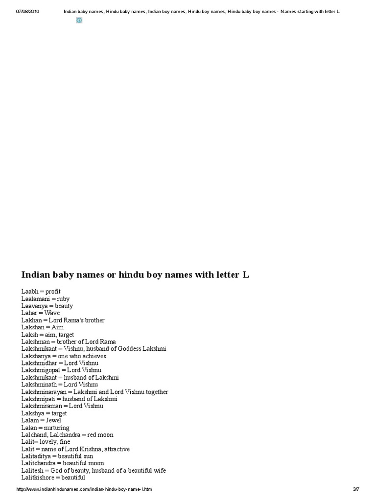 Indian Baby Boy Names Starting With L Latest 2020